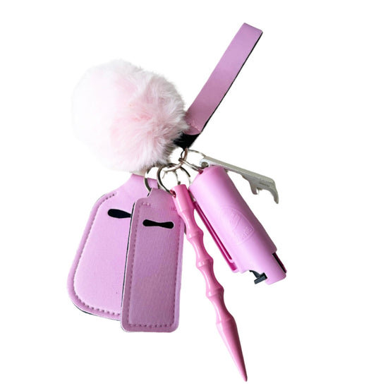 This Keychain Comes With: (1) Wristlet (1) Lip Gloss & Hand Sanitizer Holder (1) Kubotan ...