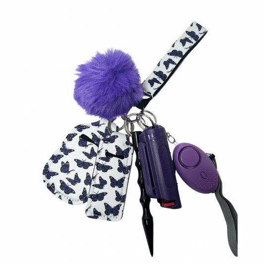 This Safety Keychain Comes With: (1)Wristlet (1) Hand Sanitizer & Lip Gloss Holder (1) Fur...