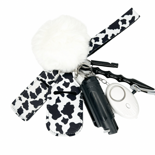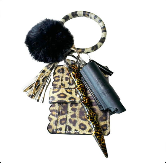 This keychain comes with: (1) Wristlet (1)Fur ball (1) Hand Sanitizer Holder (1)Pepper spay (1)Personal...