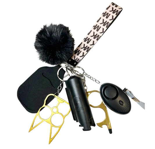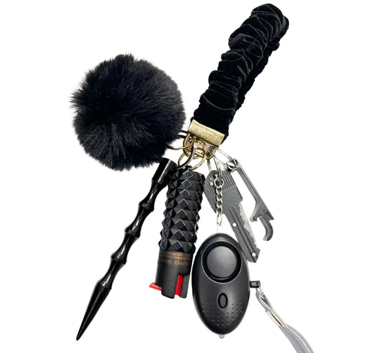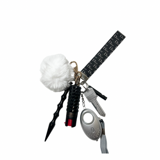 This Safety Keychain Comes With: (1) Wristlet (1) Fur Ball (1) Kubotan (1) Studded Pepper...