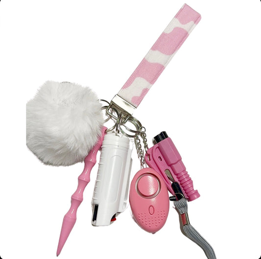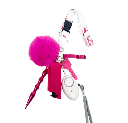 This Safety Keychain Comes With: (1)Wristlet (1) Hand Sanitizer & Lip Gloss Holder (1) Fur...