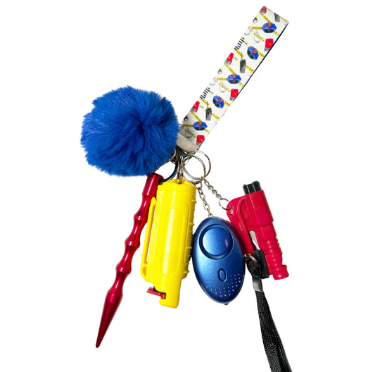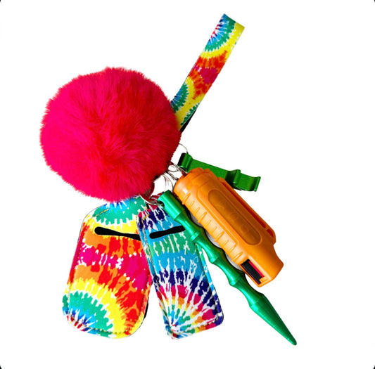 This Self Defense Keychain Comes With: (1) Wristlet (1) Lip Gloss & Hand Sanitizer...