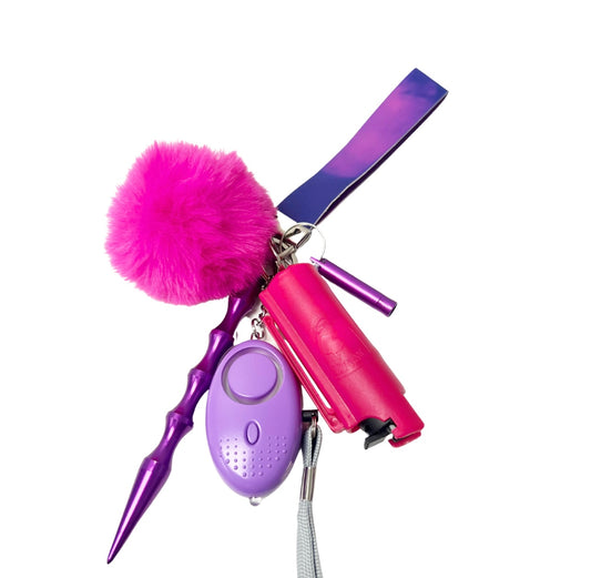 This keychain comes with: (1) Wristlet (1) Fur Ball (1) Bling pepper spray, (1) Personal...