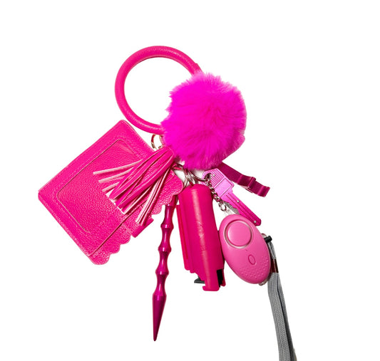 This Keychain Comes With: (1) Wristlet & ID Holder (1) Fur Ball (1) Kubotan (1) Bling Pepper Spray (1)...