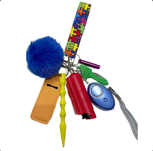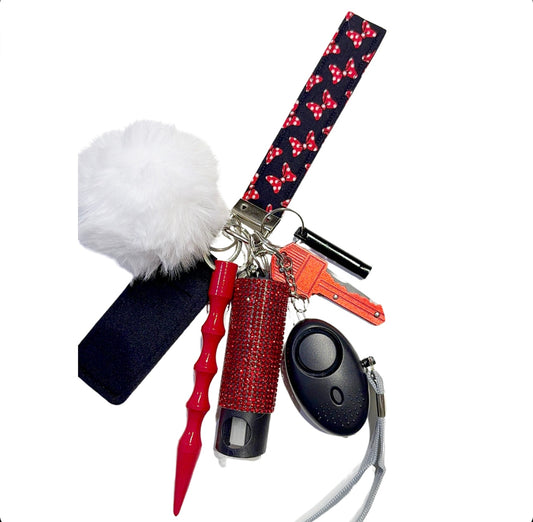This keychain comes with: (1) Wristlet (1) Fur ball (1) Bling pepper spray, (1) Personal...