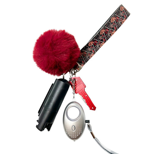 This Keychain Comes With: (1) Wristlet (1) Fur Ball (1) Discreet Key Knife (1) Pepper...