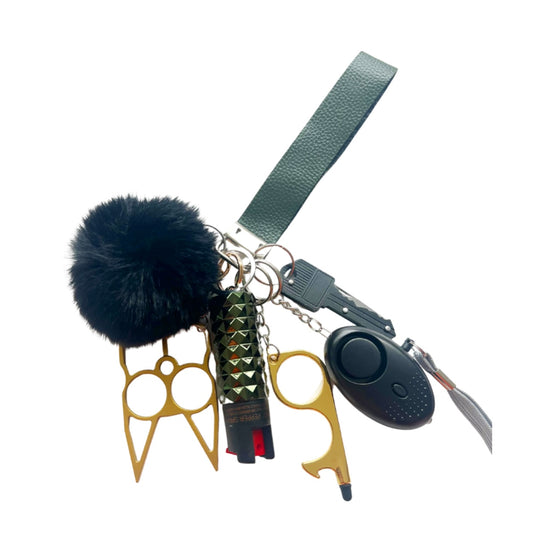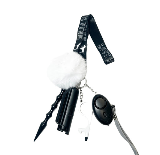 This Keychain Comes With: (1) Wristlet (1) Fur Ball (1) Kubaton (1) Pepper Spray (1)...