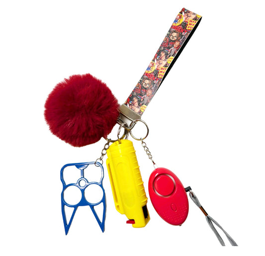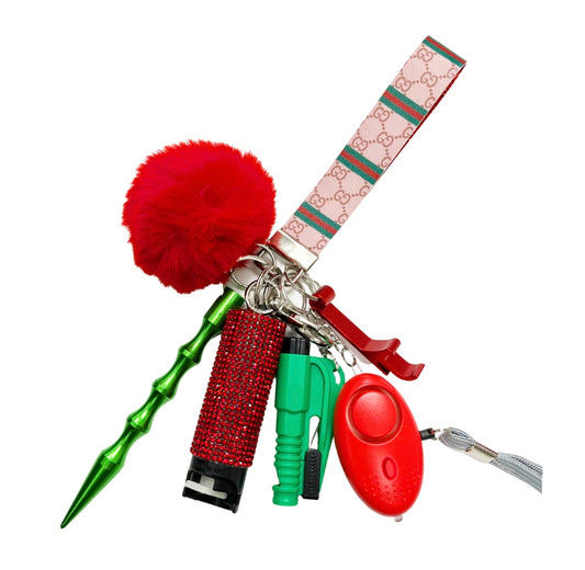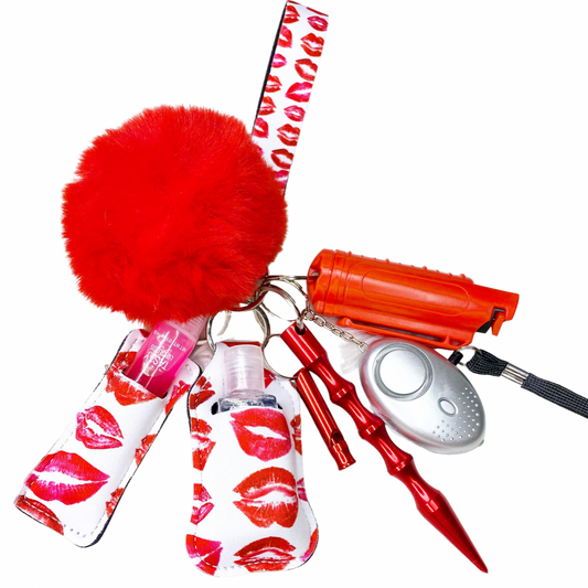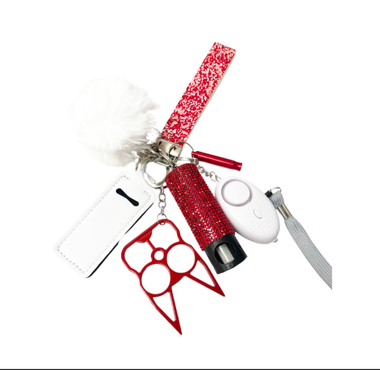 This Self Defense Keychain Comes With: (1) Wristlet (1) Lip Gloss & Hand Sanitizer...